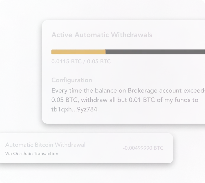 Our automatic withdrawals feature gives you a hands-off way to send your Bitcoin to self-custody.